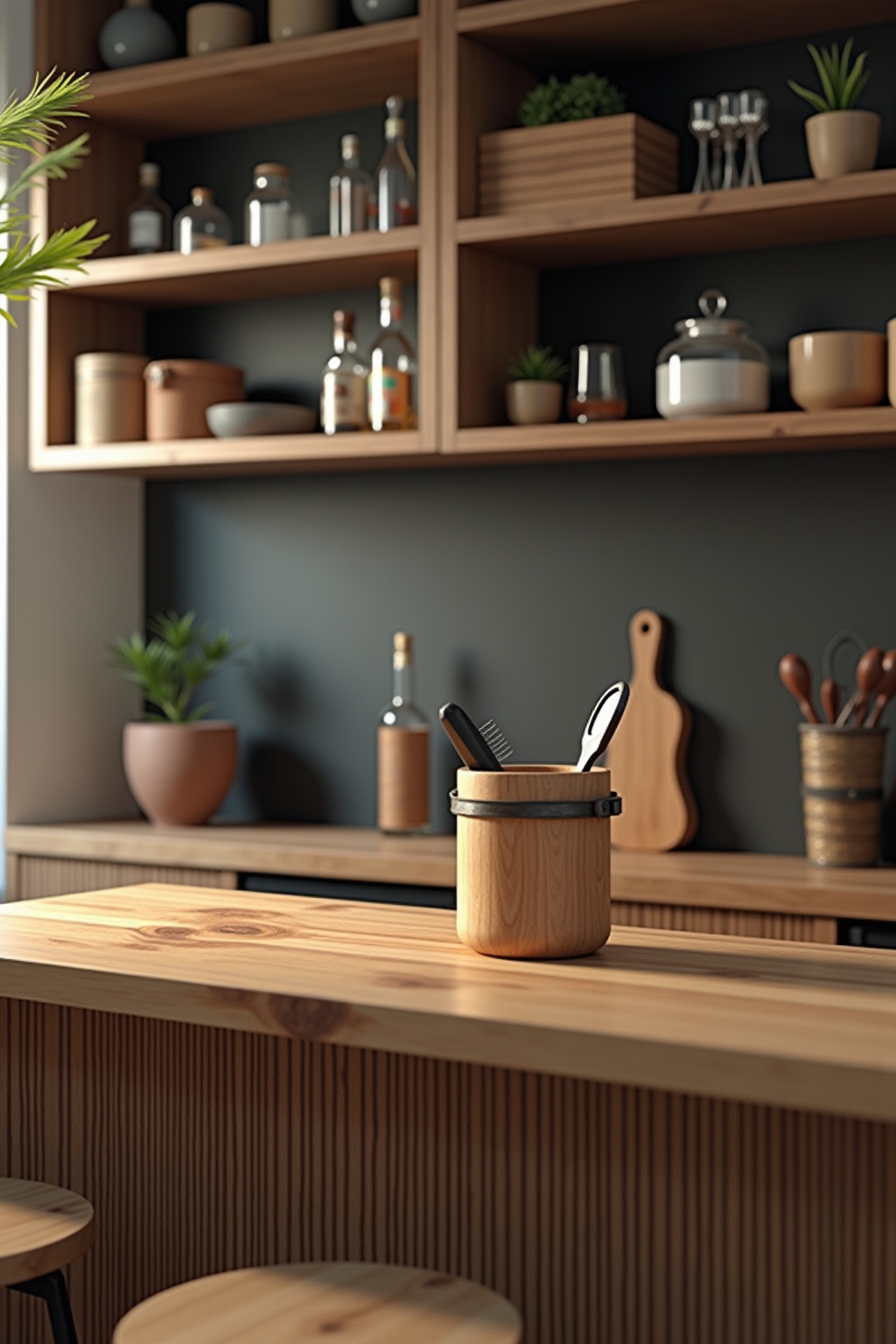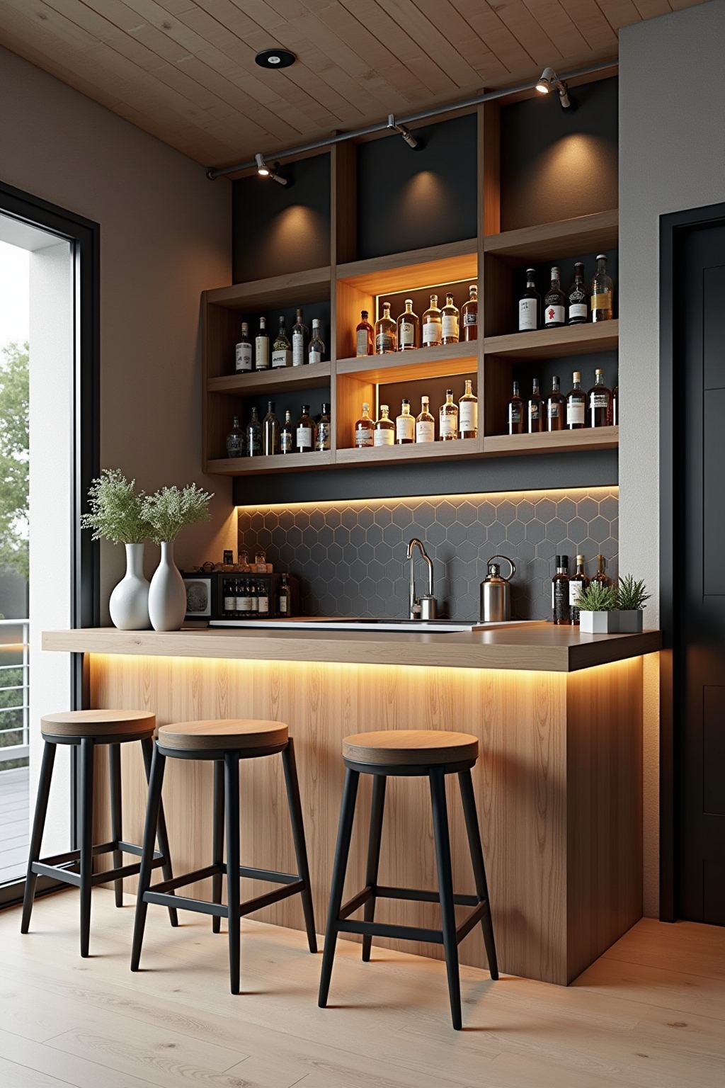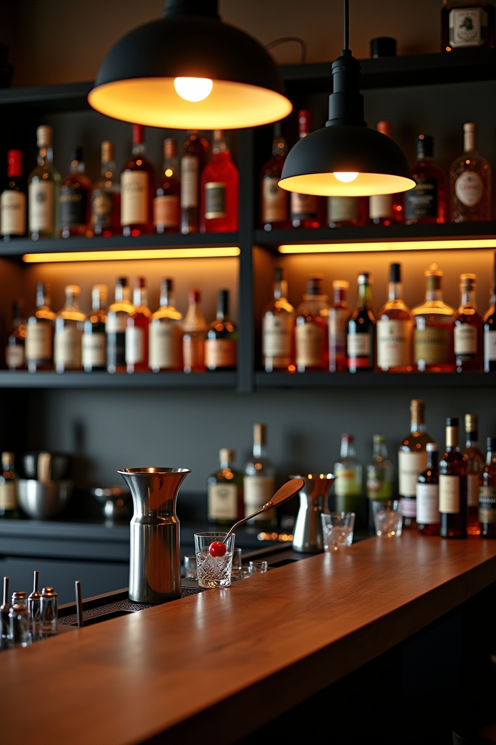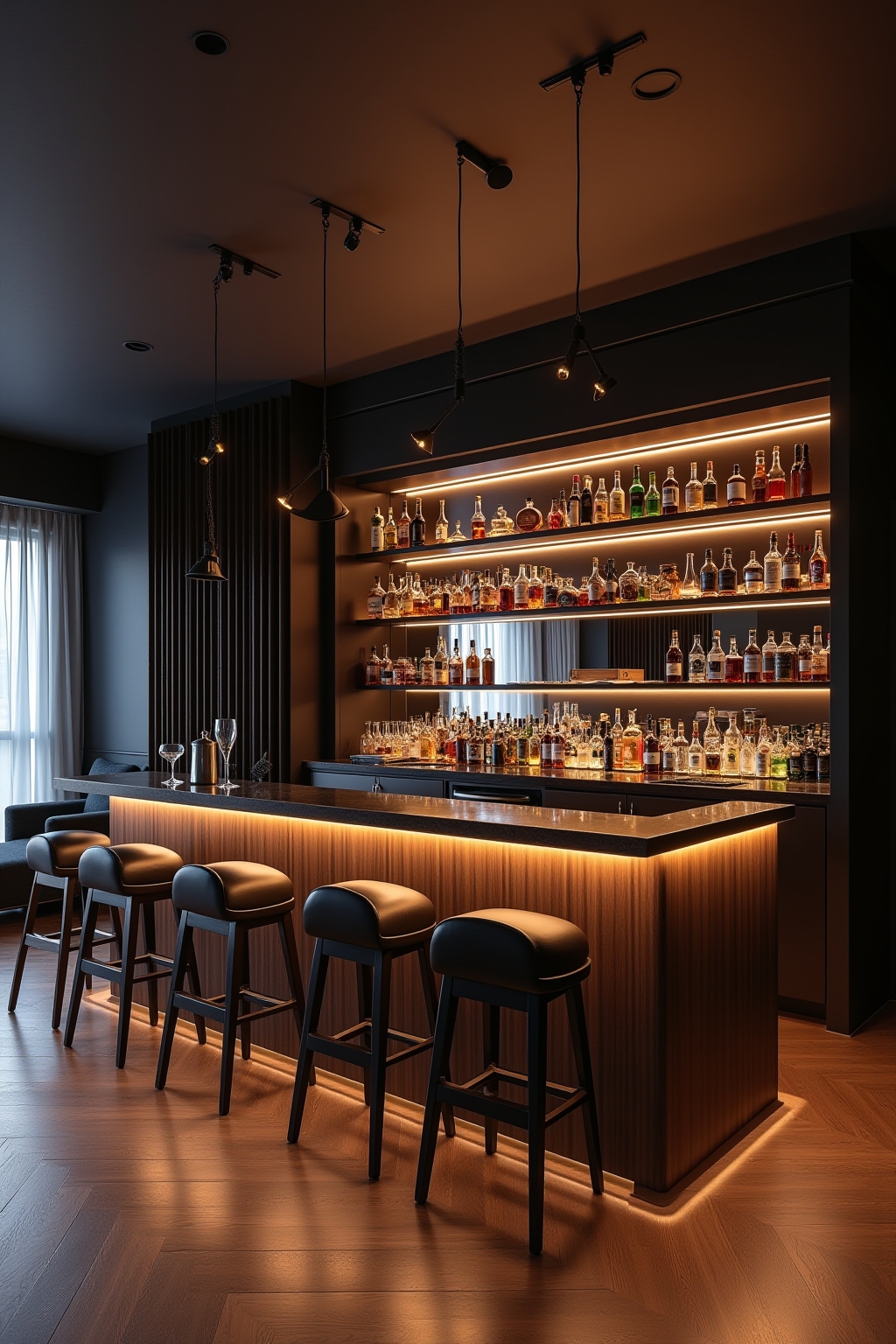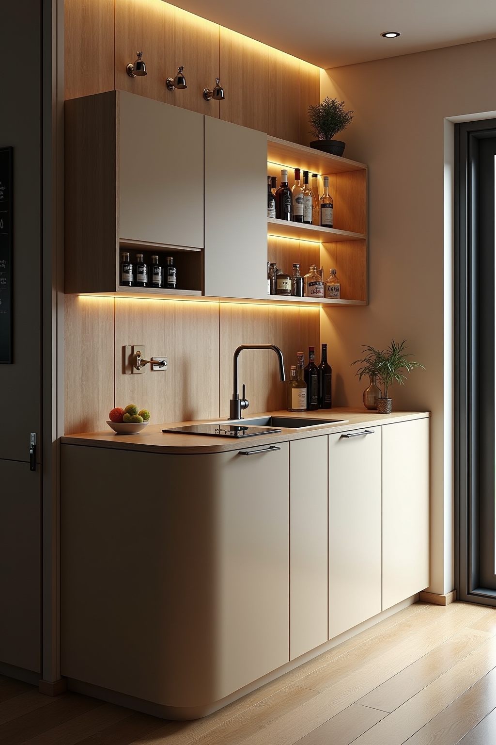 - Integration der Bar in bestehende Möbelstücke maximiert den vorhandenen Raum.