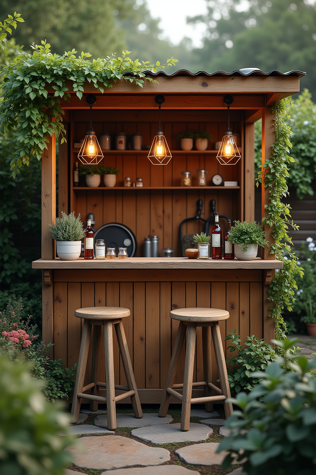 Upcycling-Materialien wie Europaletten, alte Türen oder Weinkisten senken die Kosten erheblich und verleihen Ihrer Bar einen einzigartigen Charakter.