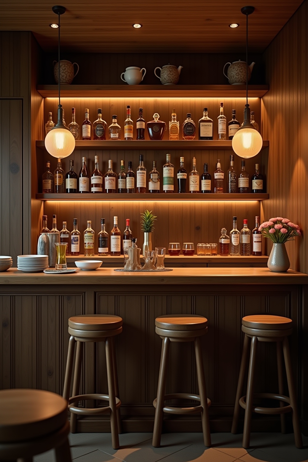 Die richtige Beleuchtung verwandelt Ihre selbstgebaute Bar von einer einfachen Konstruktion in einen beeindruckenden Blickfang, der Ihre Gäste garantiert begeistern wird. Mit LED-Streifen unter der Theke oder hinter Glasregalen erzeugen Sie einen stimmungsvollen Hintergrundeffekt, der Ihre Bar in sanftes, farbiges Licht taucht. Dimmbare Pendelleuchten oder Spots über der Arbeitstheke sorgen für funktionales Licht, während sie gleichzeitig als stilvolles Design-Element dienen. Experimentieren Sie mit unterschiedlichen Lichtquellen wie indirekter Beleuchtung, Akzentlichtern oder programmierbaren RGB-LEDs, um je nach Anlass verschiedene Stimmungen zu erzeugen und Ihrer selbstgebauten Bar einen professionellen Wow-Effekt zu verleihen.