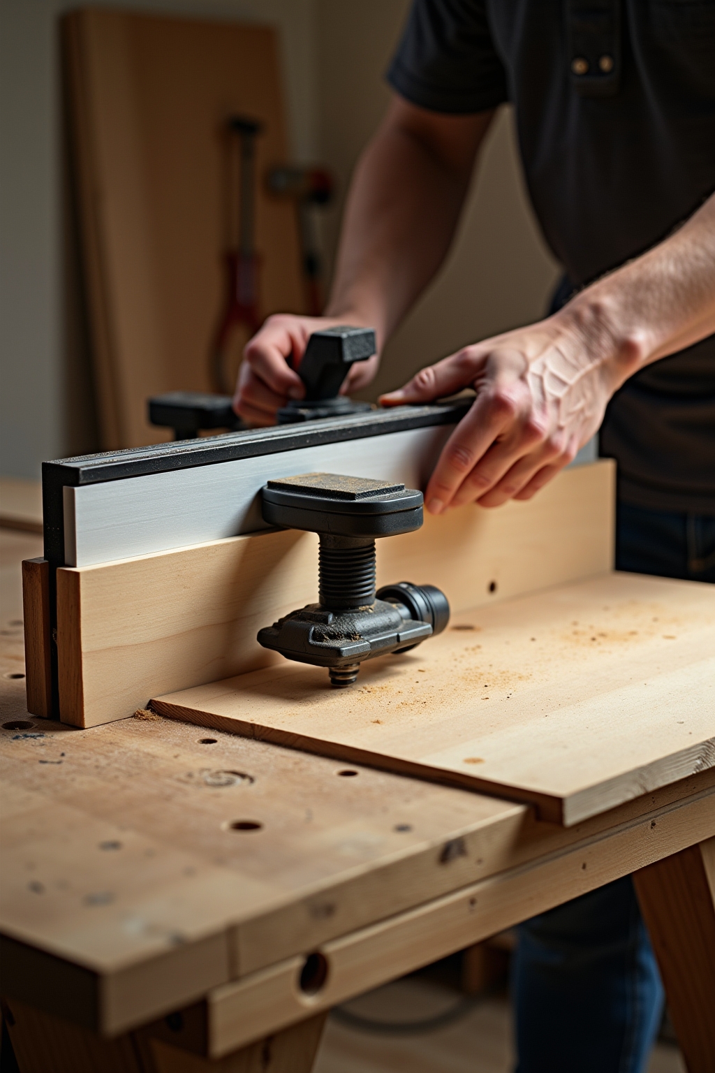 Die Sicherheit an Ihrer DIY-Frässtation beginnt mit einer robusten, vibrationsarmen Konstruktion und einer kippsicheren Unterkonstruktion. Installieren Sie einen Not-Aus-Schalter für die schnelle Stromunterbrechung und fixieren Sie Kabel ordentlich, um Stolperfallen zu vermeiden. Ein transparenter Fräserschutz aus Acrylglas ist unverzichtbar, da er sowohl vor wegfliegenden Spänen als auch vor versehentlichem Kontakt mit dem Fräswerkzeug schützt. Die Absauganlage sollte leistungsstark sein und direkt am Fräskorb angeschlossen werden, um gesundheitsschädlichen Holzstaub zu minimieren. Verwenden Sie stets Schiebehölzer bei kleinen Werkstücken, um sicheren Abstand zum Fräser zu wahren. Ergänzen Sie den Aufbau mit stabilen Niederhaltern oder Spannvorrichtungen, die das Werkstück sicher fixieren und ein plötzliches Verrutschen oder Hochschlagen verhindern.