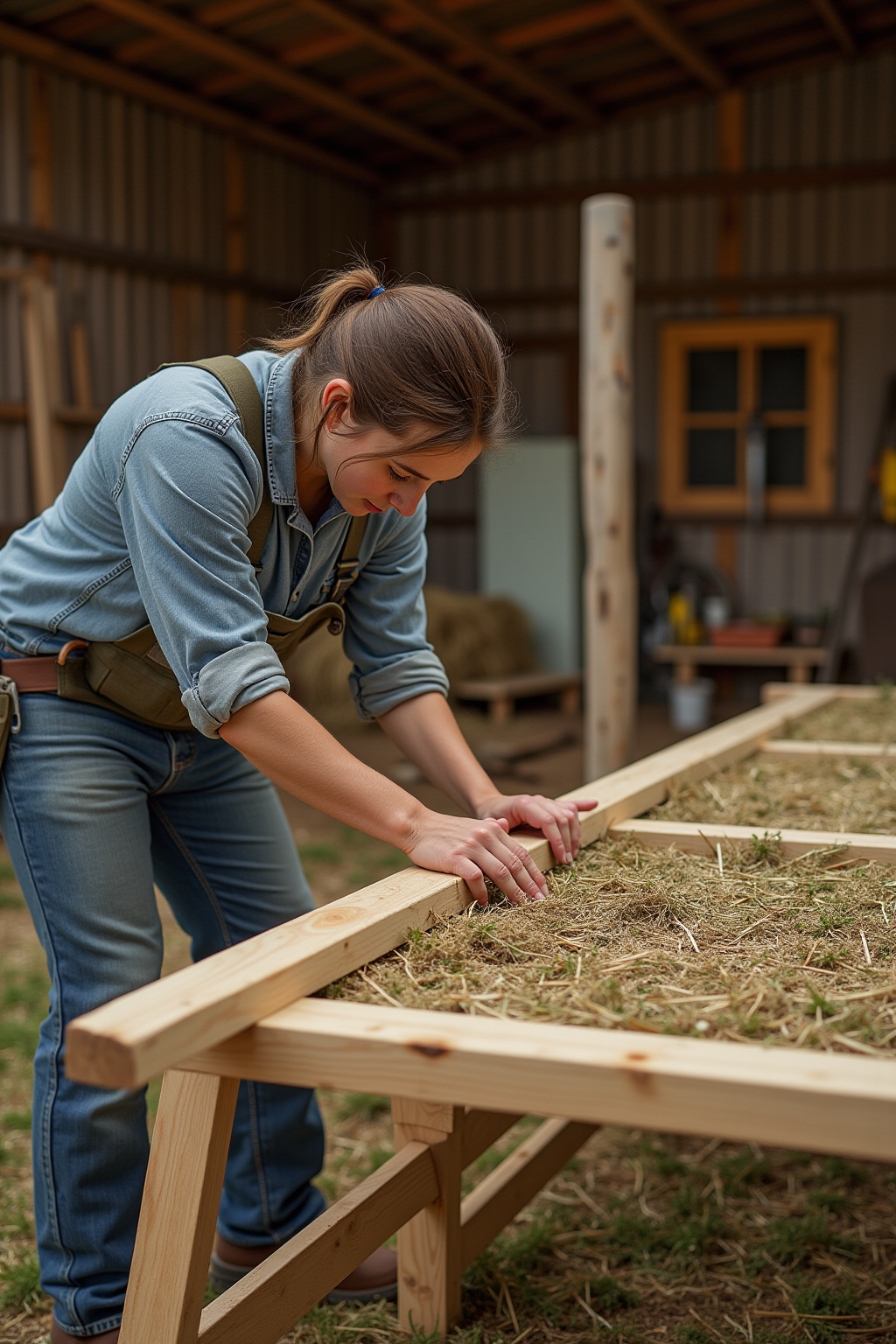 Beim Heuraufenbau für größere Tiere wie Pferde oder Rinder ist die Stabilität der Konstruktion besonders wichtig, da diese Tiere deutlich mehr Kraft entwickeln können als kleinere Nutztiere. Die Abstände zwischen den Stäben sollten ausreichend eng sein, um zu verhindern, dass die Tiere mit ihren Köpfen stecken bleiben, jedoch weit genug, damit sie bequem an das Futter gelangen können. Für große Tiere empfiehlt sich zudem eine robuste Bodenplatte, die das Umkippen der Raufe auch bei seitlichem Druck verhindert. Besonders bei freilaufenden Tieren sollten Sie außerdem auf abgerundete Kanten und eine splitterfreie Verarbeitung achten, um Verletzungsrisiken zu minimieren.