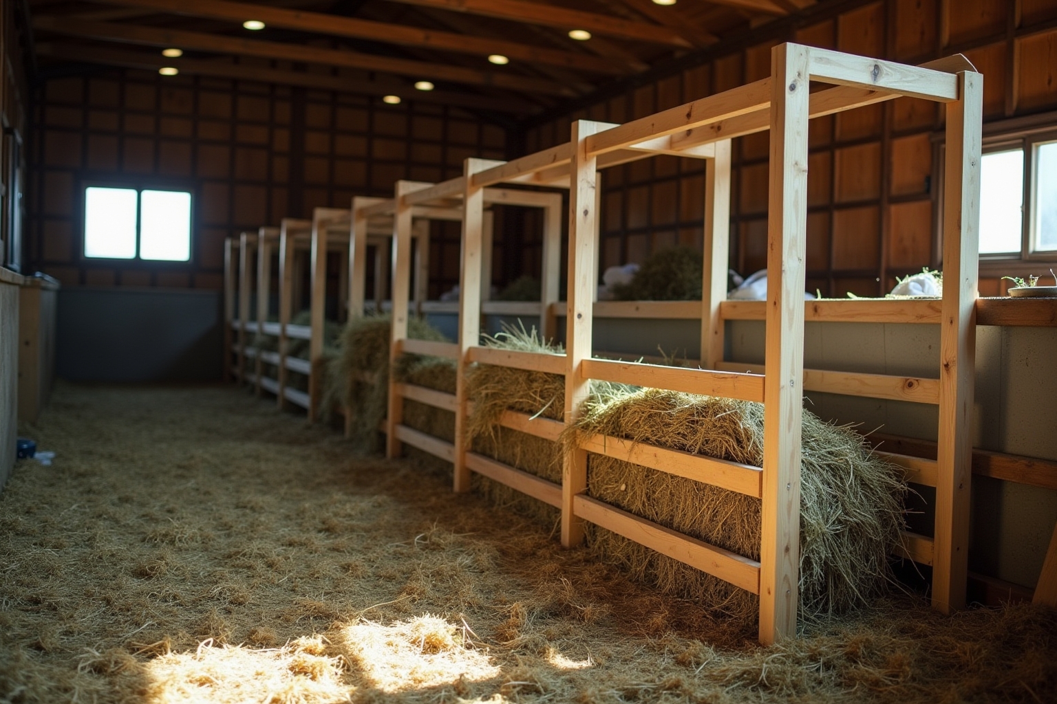 Beim Selbstbau einer Heuraufe ist die Wahl der richtigen Bauart entscheidend für die Funktionalität und das Wohlbefinden der Tiere. Wandraufen eignen sich besonders für beengte Räume und bieten den Vorteil, dass sie wenig Platz im Stall benötigen, während freistehende Raufen eine Fütterung von allen Seiten ermöglichen. Eckraufen stellen eine platzsparende Alternative dar, die sich optimal in Stallecken integrieren lassen und dennoch ausreichend Futter für mehrere Tiere bereitstellen. Für größere Tiergruppen bieten sich Rundraufen an, die zentral im Auslauf oder Stall platziert werden können und einen gleichzeitigen Zugang für mehrere Tiere gewährleisten. Unabhängig von der Bauform sollte bei jeder selbstgebauten Heuraufe auf rutschfeste Standfüße, abgerundete Kanten und die richtige Spaltenbreite geachtet werden, um Verletzungsrisiken zu minimieren und Futterverschwendung vorzubeugen.
