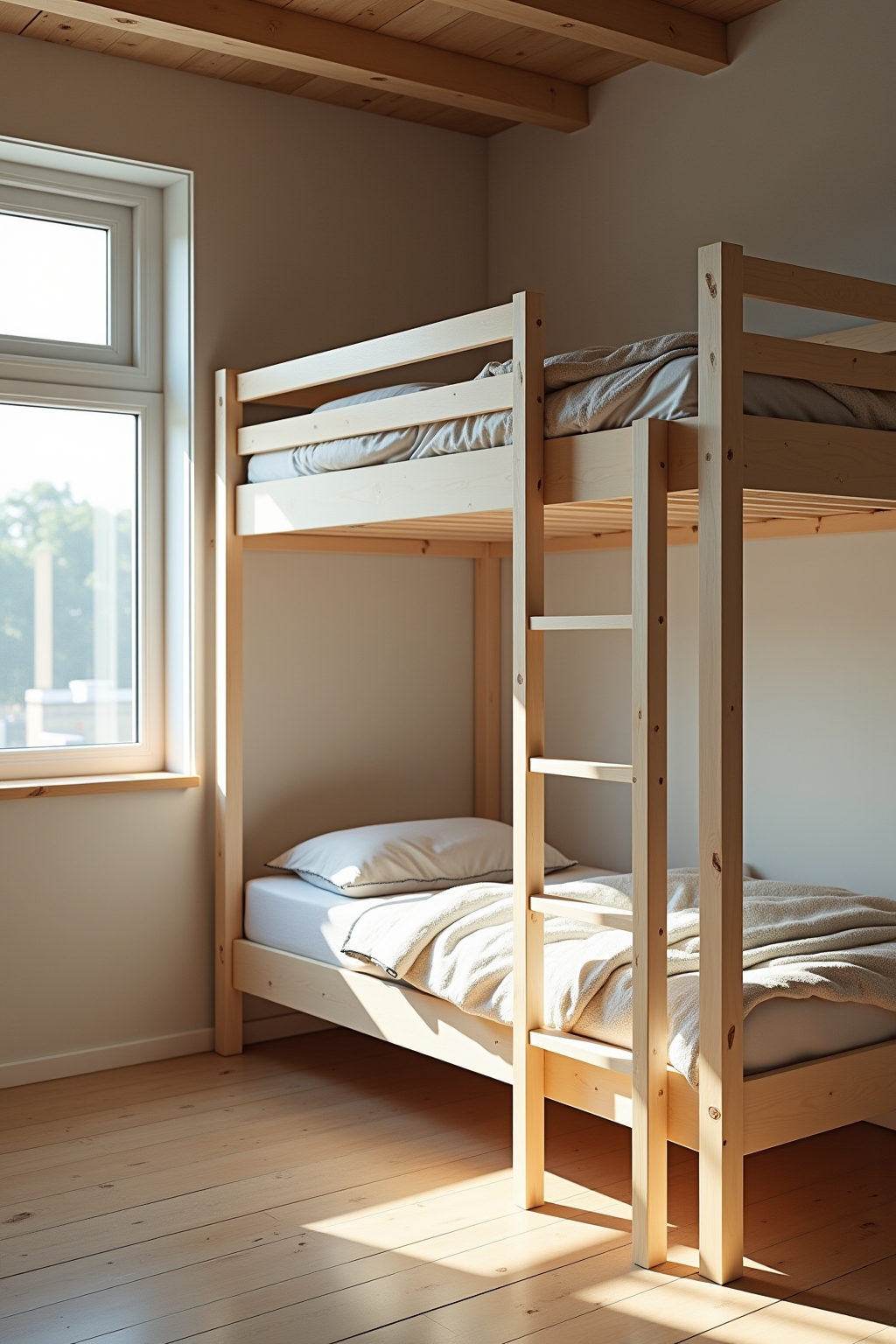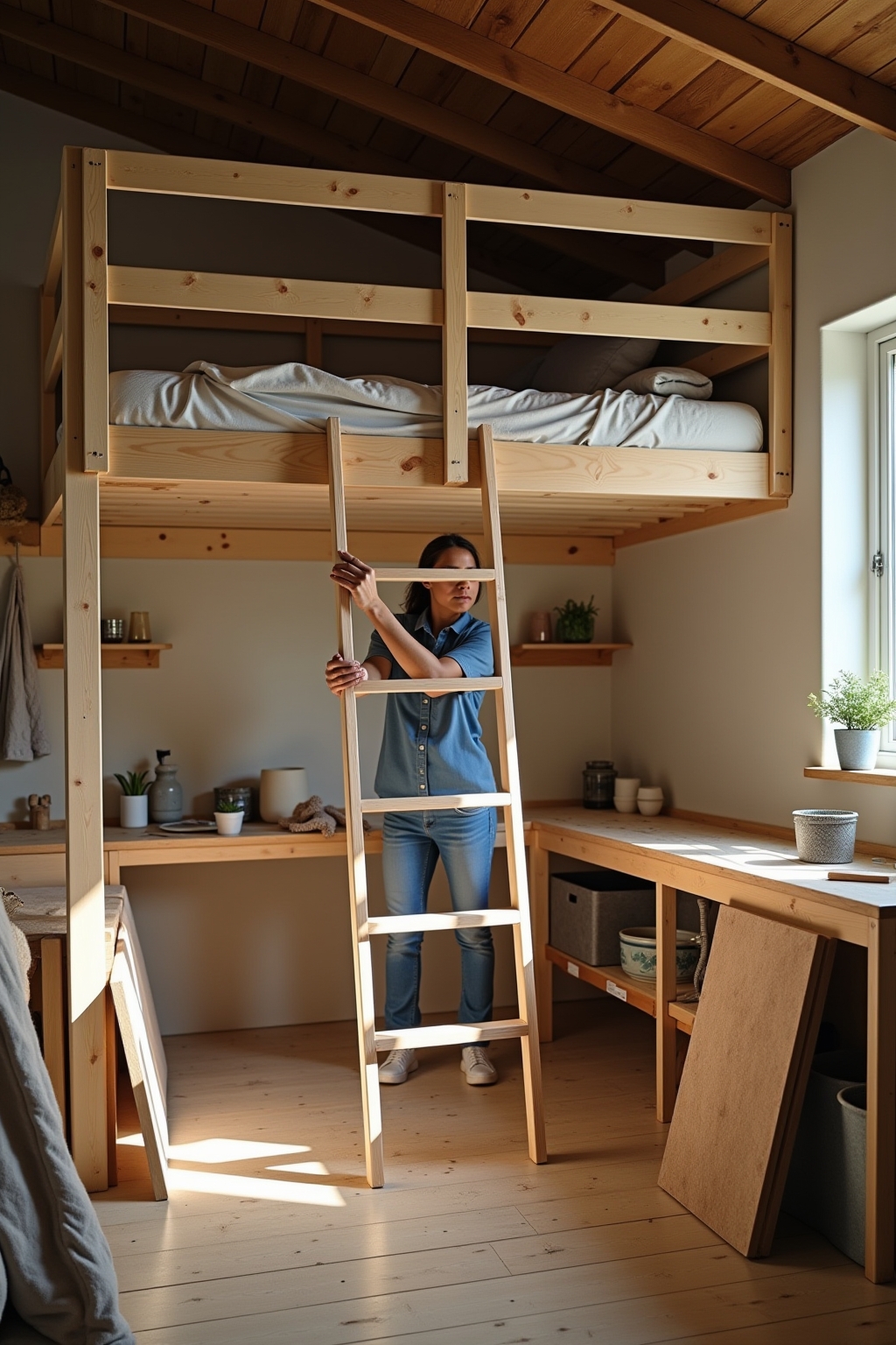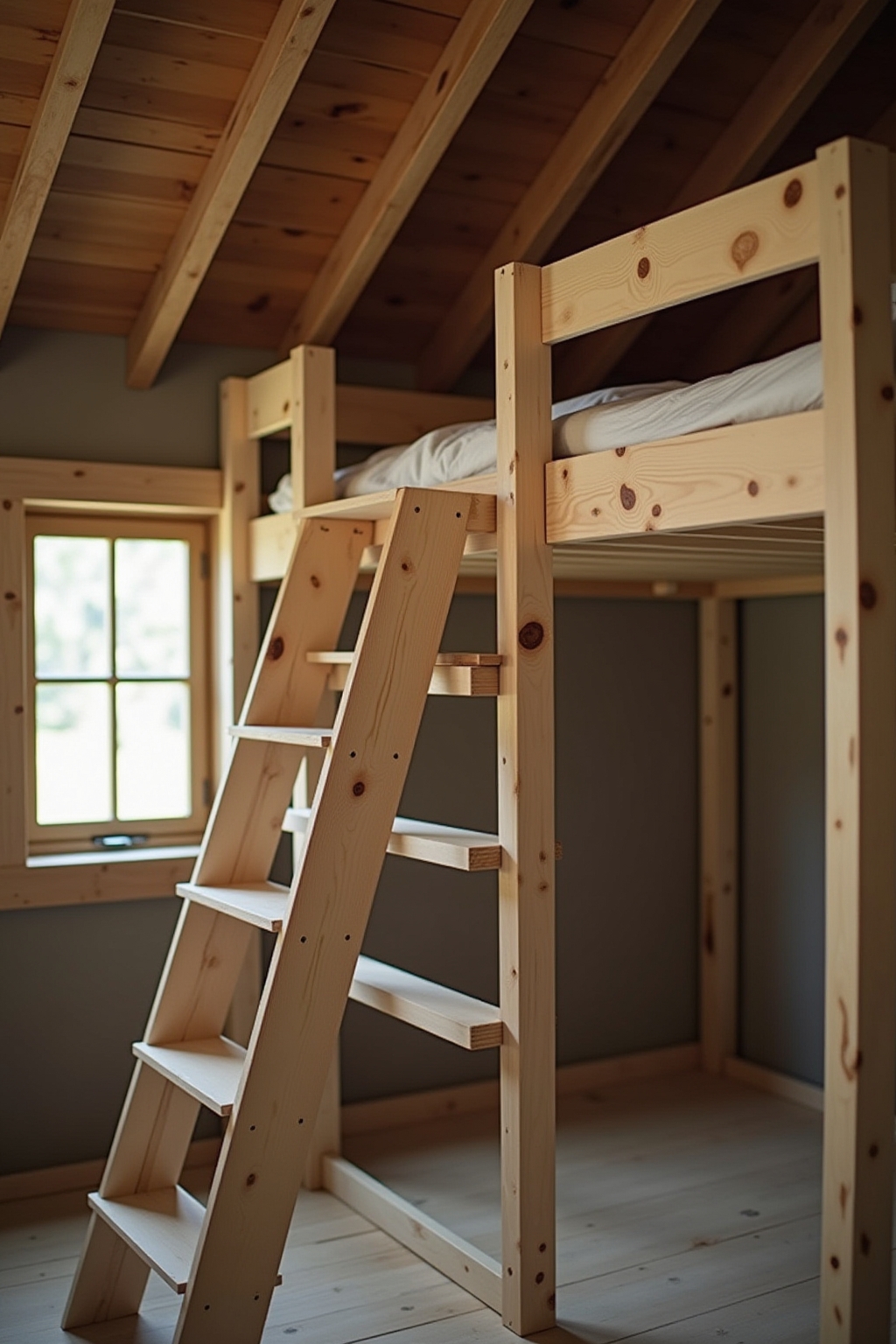 - Leiter aus dem gleichen Holz wie das Bettgestell für ein einheitliches Design bauen