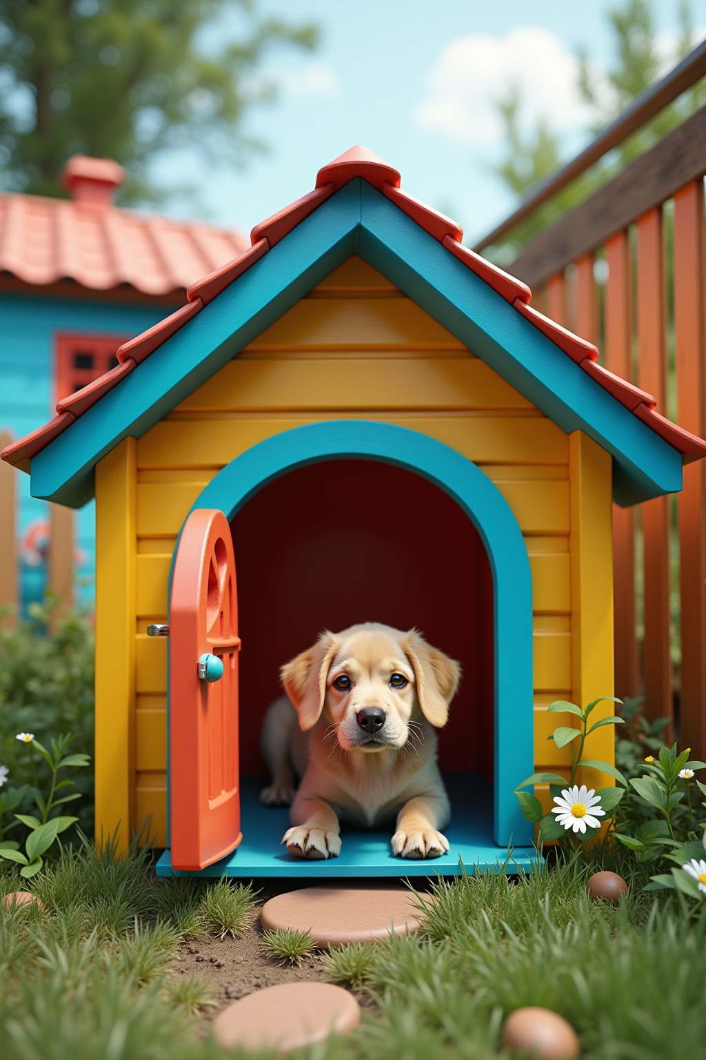 • Farbliche Anpassung der Hundehütte an das Haupthaus schafft ein harmonisches Gesamtbild.