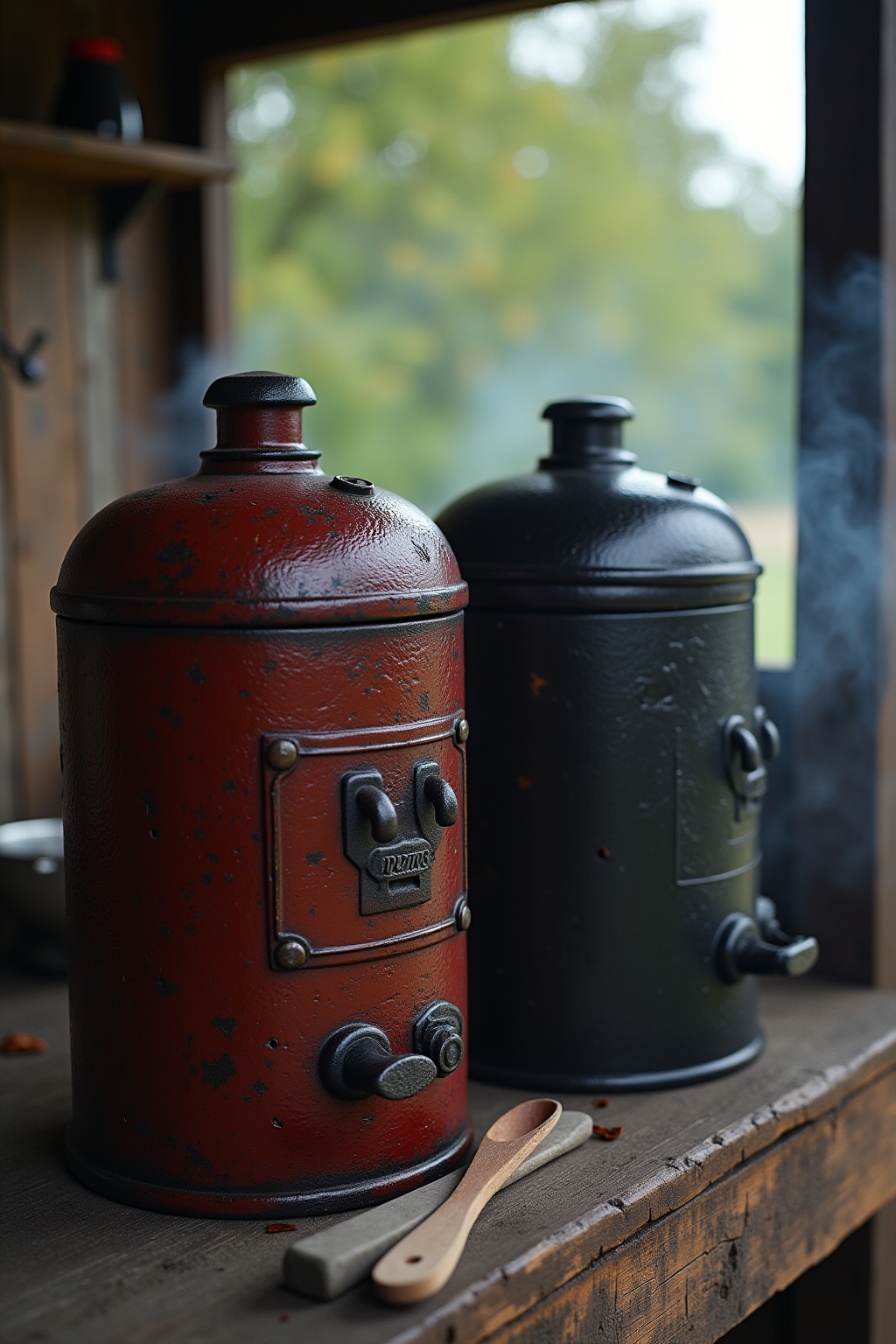 Wichtig zu beachten: Bei der Verwendung von Altmaterialien wie Fässern oder Gasflaschen ist eine gründliche Reinigung und Entfernung von Lackresten oder Chemikalien unerlässlich für unbedenkliche Lebensmittel.