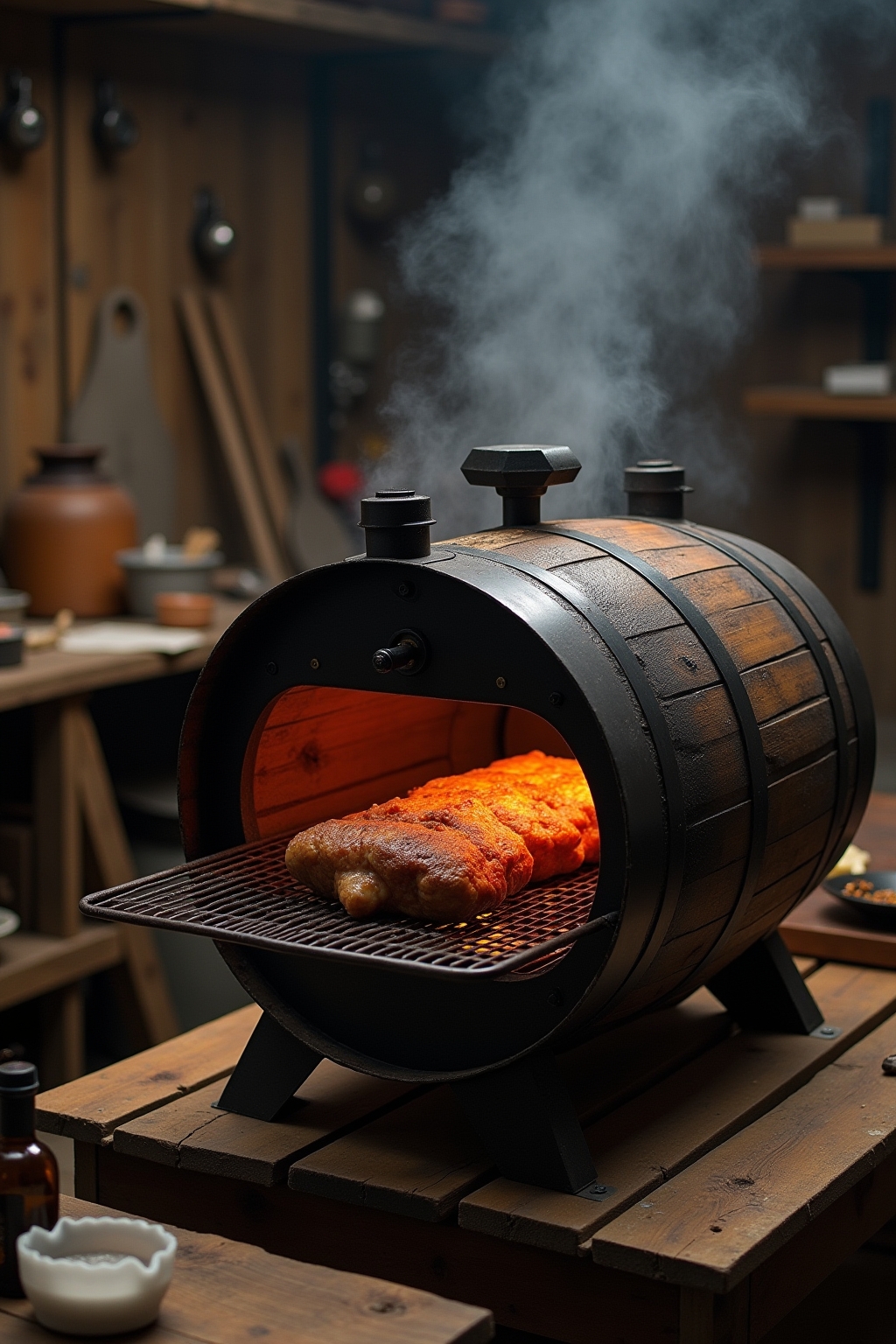 Für die Konstruktion eines Räuchergeräts eignen sich verschiedene hitzebeständige Materialien. Besonders beliebt ist Edelstahl, da er langlebig, rostfrei und leicht zu reinigen ist. Alte Metalltonnen oder -fässer bieten eine kostengünstige Alternative. Ziegelsteine oder Schamottsteine sind ideal für einen gemauerten Smoker, der Wärme hervorragend speichert. Bei kleineren Räucherkammern kann auch ein ausgedienter Kühlschrank oder eine Holzkiste mit Blechauskleidung verwendet werden. Wichtig ist, dass alle Materialien lebensmittelecht und frei von schädlichen Beschichtungen sind, die bei Hitzeeinwirkung gesundheitsschädliche Stoffe freisetzen könnten.