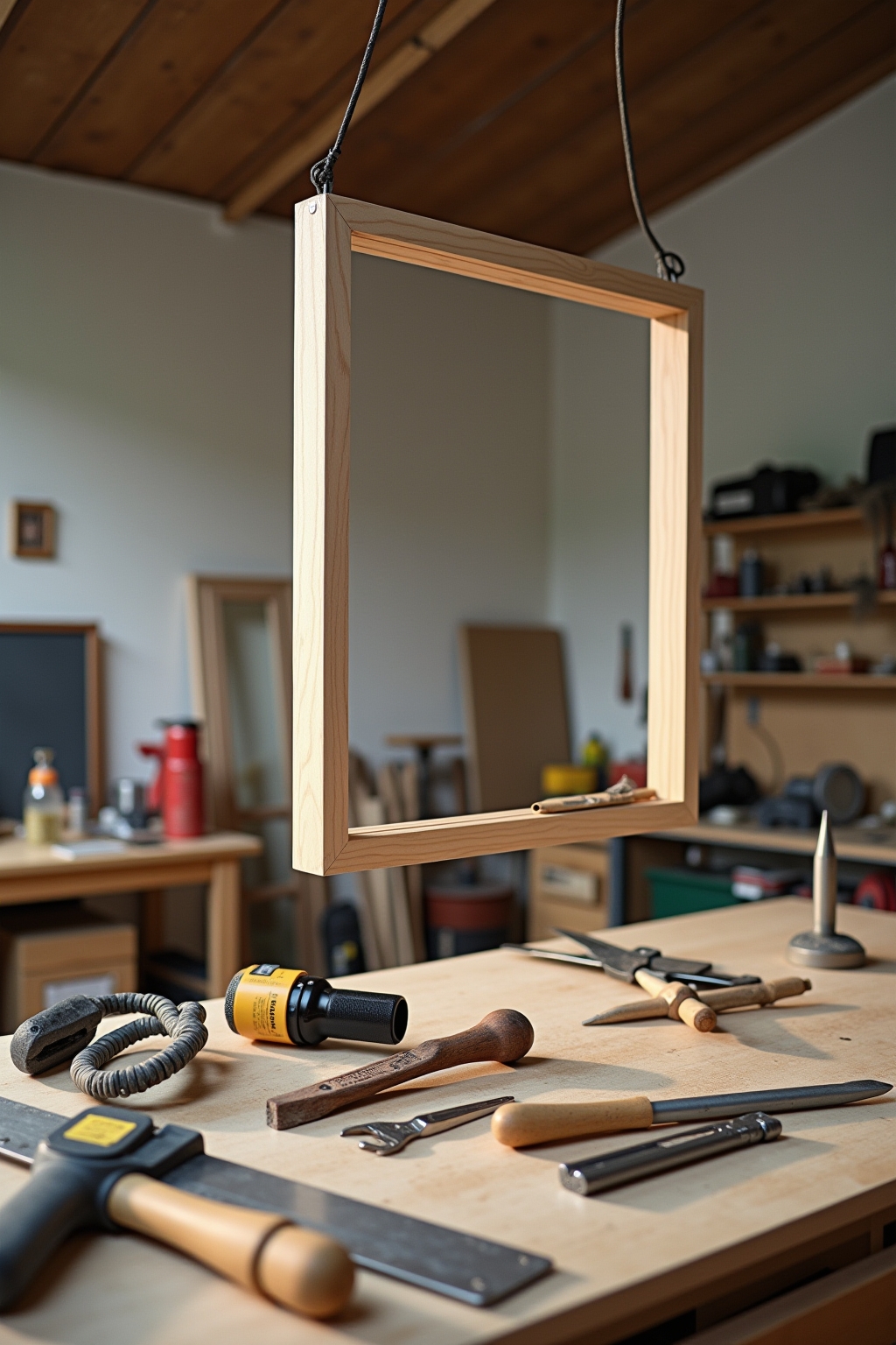 Für den Bau eines Schweberahmens ist eine grundlegende Ausstattung an Holzbearbeitungswerkzeugen erforderlich. Unverzichtbar sind eine Gehrungssäge oder ein Gehrungslade mit Feinsäge für präzise 45°-Schnitte an den Ecken der Leisten. Zum Verbinden der Rahmenteile benötigen Sie einen Hammer, Holzleim, Schraubzwingen und ggf. einen Tacker mit Klammern. Für die Bearbeitung der Oberflächen sind Schleifpapier verschiedener Körnungen und ein Schleifklotz hilfreich. Zum Befestigen des Bildes im Floaterframe dienen Tacker, Bildaufhänger und dünne Nägel. Optional erleichtern ein Bandmaß, Bleistift, Winkel, Holzdübel sowie eine Bohrmaschine mit Holzbohrer den Bauprozess und verbessern die Stabilität der Rahmenkonstruktion.