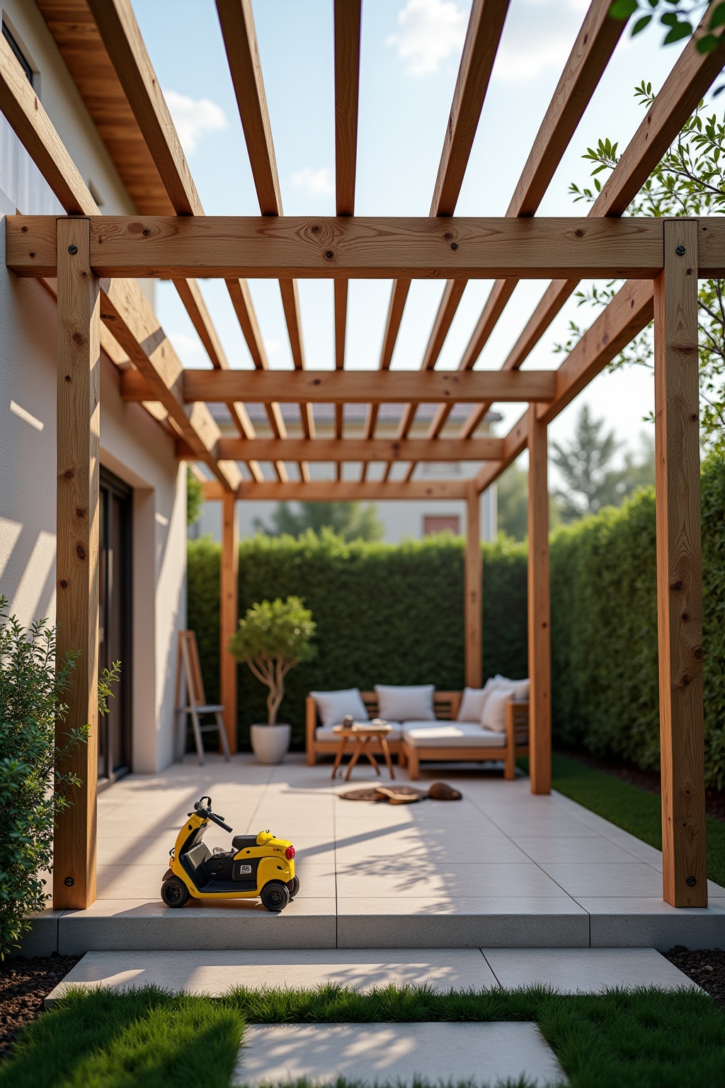 Für den erfolgreichen Selbstbau einer Terrassenüberdachung benötigen Sie zunächst hochwertiges Holz wie druckimprägnierte Kiefer, Douglasie oder das besonders witterungsbeständige Lärchenholz. Als Dacheindeckung eignen sich lichtdurchlässige Materialien wie Polycarbonatplatten oder VSG-Glas, wobei letzteres zwar teurer, aber deutlich langlebiger und pflegeleichter ist. Unverzichtbar sind außerdem stabile Metallverbinder, spezielle Pfostenträger und korrosionsbeständige Schrauben, die für den nötigen Halt und eine lange Lebensdauer sorgen. Für das Fundament benötigen Sie Beton und gegebenenfalls Schotter für eine gute Drainage, wobei besonders bei größeren Überdachungen auf eine ausreichende Fundamenttiefe geachtet werden sollte. Nicht zu vergessen sind qualitativ hochwertige Werkzeuge wie Akkuschrauber, Wasserwaage, Kettensäge oder Handkreissäge, die präzises Arbeiten ermöglichen und den Bauprozess erheblich erleichtern.