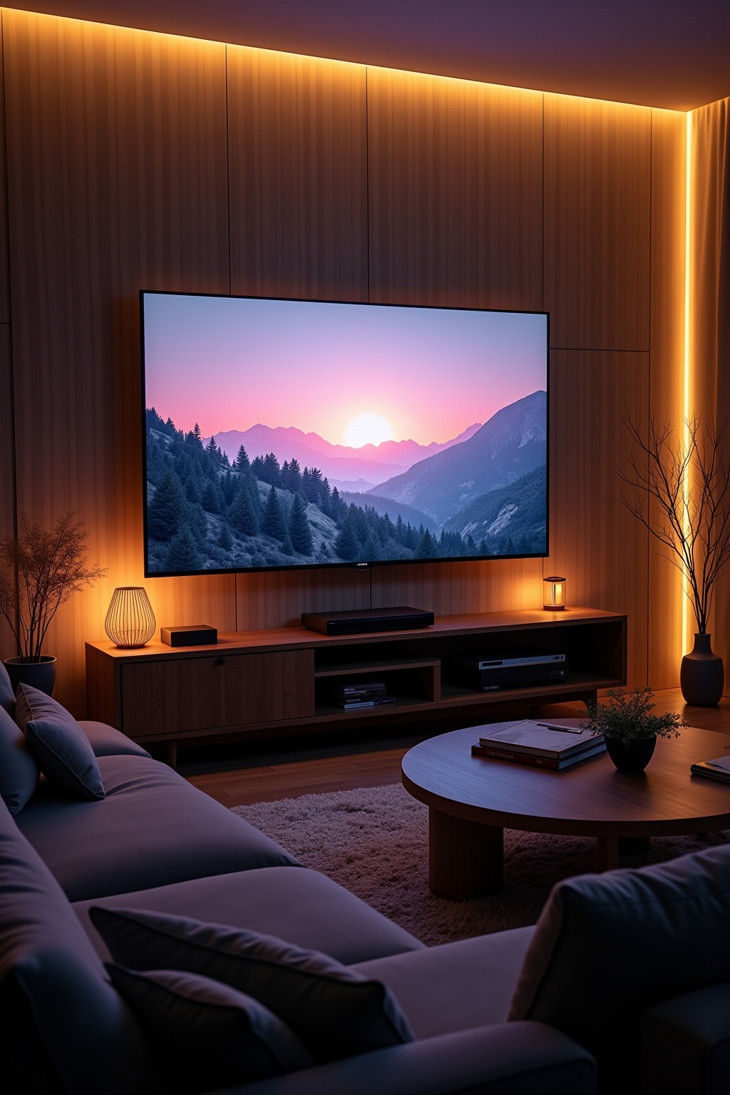 Wer seine selbstgebaute TV-Wand zum echten Hingucker machen möchte, sollte dekorative Elemente geschickt integrieren. Kleine Regalnischen neben oder über dem Fernseher bieten Platz für persönliche Accessoires wie Pflanzen, Bücher oder stilvolle Deko-Objekte, die dem Ganzen eine individuelle Note verleihen. Mit indirekter LED-Beleuchtung hinter dem Fernseher oder entlang der Wandverkleidung erzeugen Sie nicht nur eine gemütliche Atmosphäre, sondern setzen Ihre handwerkliche Leistung gekonnt in Szene. Achten Sie jedoch darauf, dass die dekorativen Elemente mit dem Gesamtkonzept Ihrer TV-Wand harmonieren und nicht vom eigentlichen Mittelpunkt – dem Fernseher – ablenken.