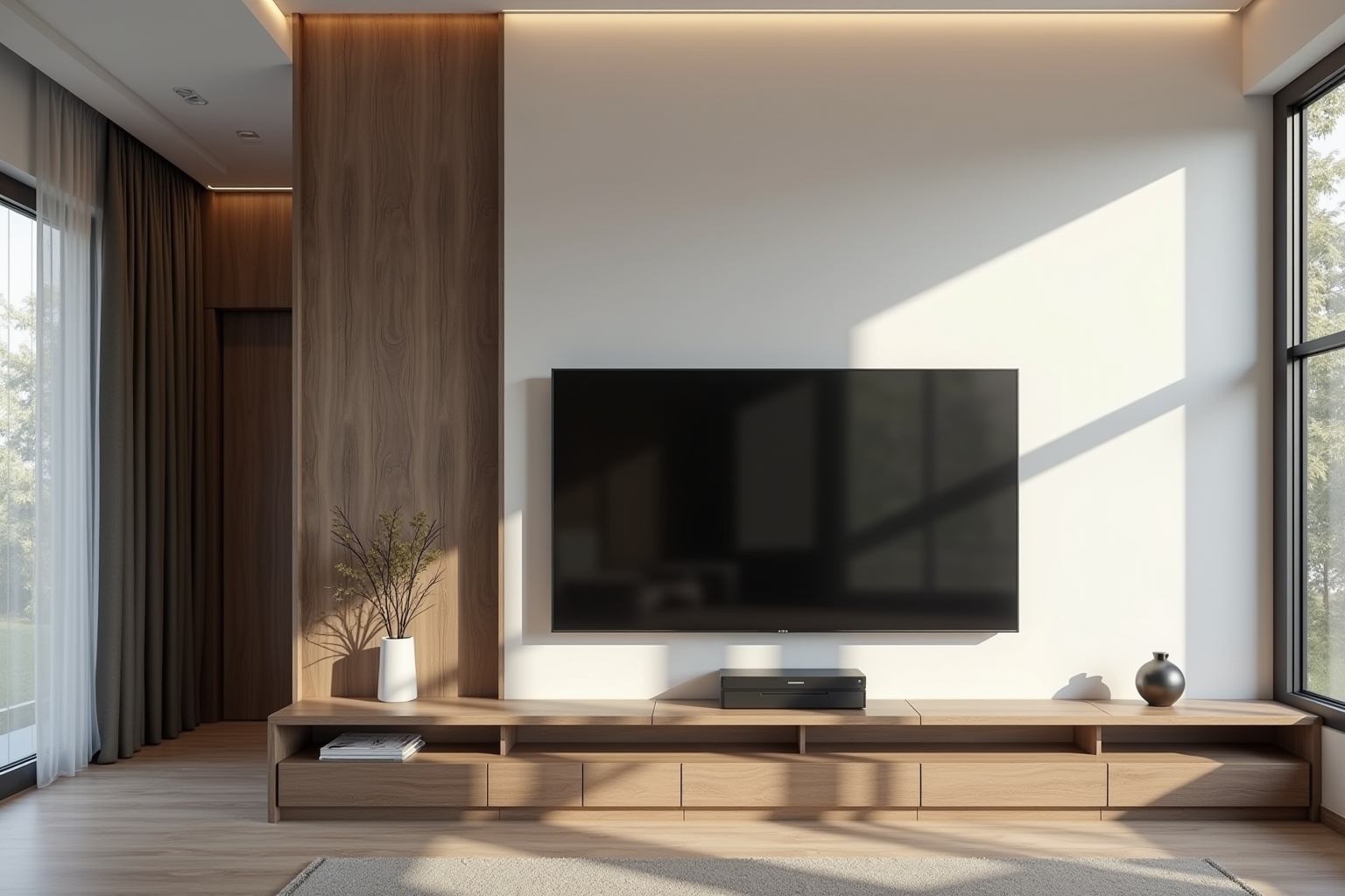 Die Materialauswahl für deine TV-Wand ist entscheidend für die Optik, Funktionalität und Langlebigkeit deines DIY-Projekts. Je nach deinem persönlichen Stil kannst du zwischen Holzplatten, MDF, Gipskarton oder sogar Paletten als Grundmaterial wählen, wobei MDF durch seine glatte Oberfläche besonders gut für präzise Ausschnitte und spätere Lackierungen geeignet ist. Achte beim Kauf auf ausreichende Stärke des Materials – für tragende Elemente solltest du mindestens 19mm Stärke einplanen, um das Gewicht deines Fernsehers sicher zu tragen. Neben dem Hauptmaterial benötigst du zusätzlich passende Befestigungselemente wie Schrauben, Dübel und eine stabile TV-Halterung, die für das Gewicht deines Geräts ausgelegt ist. Die richtige Oberflächenbehandlung mit Grundierung, Farbe oder Holzlasur schützt nicht nur das Material, sondern verleiht deiner selbstgebauten TV-Wand auch den letzten optischen Schliff.
