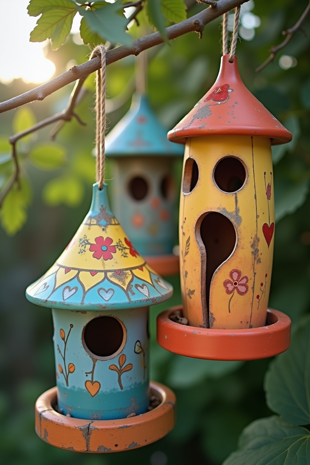Upcycling-Tipp: Alltagsgegenstände wie Teekannen, Briefkästen oder Musikinstrumente eignen sich hervorragend als Basis für originelle Vogelfutterhäuser.